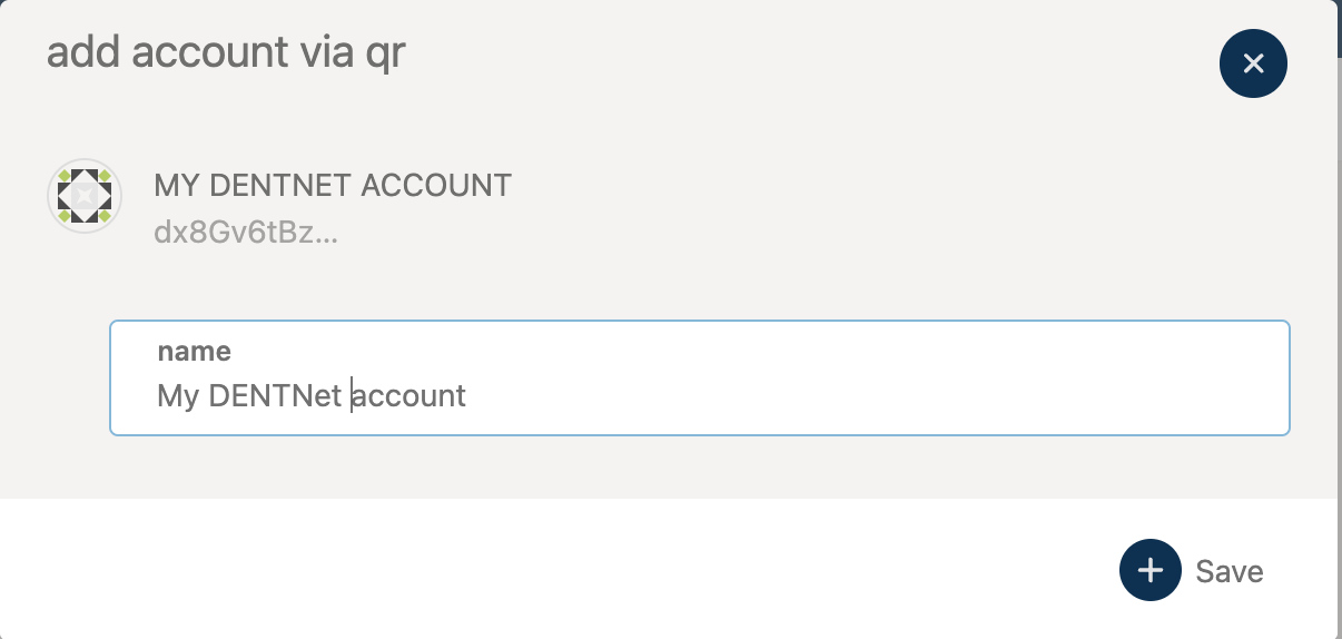 - Click on the "From QR" button and scan the QR code that appeared on your phone. Choose a name for the account and click "Save".