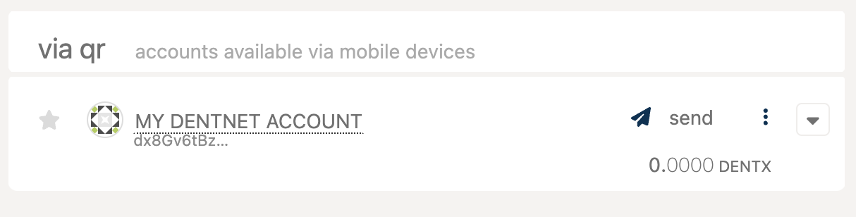 If you click on your account, you can copy the address to receive DENTX or look up transactions in the explorer.md.